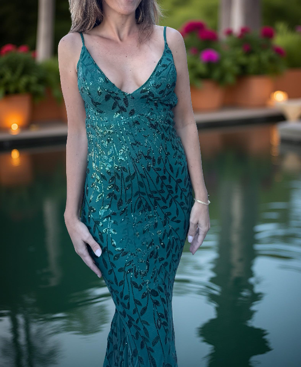 Este deslumbrante vestido largo de lentejuelas es perfecto para las ocasiones más especiales. Con un corte sirena y un ajuste semielastizado que realza tu figura, el talle alto de este vestido estiliza tu silueta. El escote en V profundo agrega un toque de sensualidad, mientras que la espalda abierta con cierre posterior añade un detalle elegante y sofisticado. El acabado de lentejuelas hace que este vestido sea verdaderamente espectacular, creando un efecto de brillo y destello que hará que te destaques en cualquier evento. Si buscas un look impresionante que no pase desapercibido, este vestido de lentejuelas es la elección perfecta.