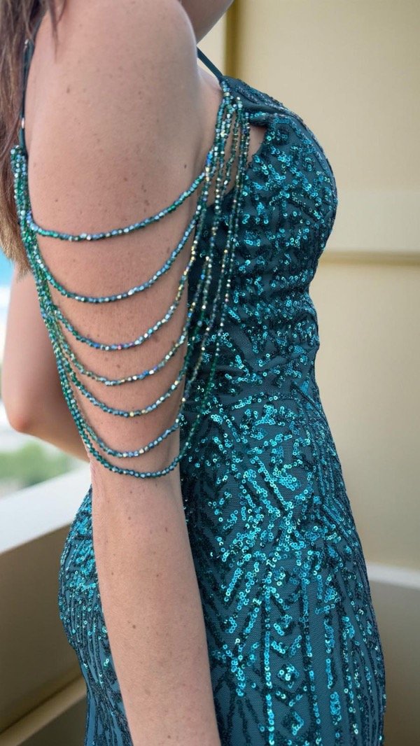 Este deslumbrante vestido largo de lentejuelas es perfecto para las ocasiones más especiales. Con un corte sirena y un ajuste semielastizado que realza tu figura, el talle alto de este vestido estiliza tu silueta. El escote en V profundo agrega un toque de sensualidad, mientras que la espalda abierta con cierre posterior añade un detalle elegante y sofisticado. El acabado de lentejuelas hace que este vestido sea verdaderamente espectacular, creando un efecto de brillo y destello que hará que te destaques en cualquier evento. Si buscas un look impresionante que no pase desapercibido, este vestido de lentejuelas es la elección perfecta.